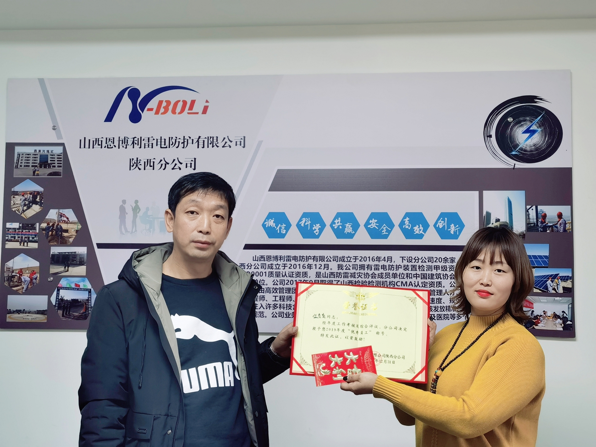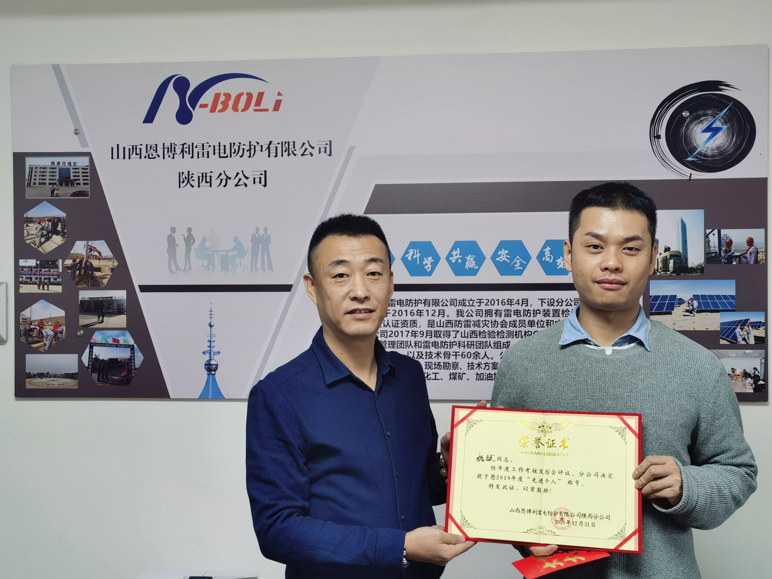 2020年1月14日山西恩博利雷電防護有限公司陜西分公司召開(kāi)了2019年度工作總結會(huì )議。此次會(huì )議,既對2019年工作進(jìn)行了經(jīng)驗總結,對優(yōu)秀員工進(jìn)行了表彰,同時(shí)也對2020工作進(jìn)行了安排部署。